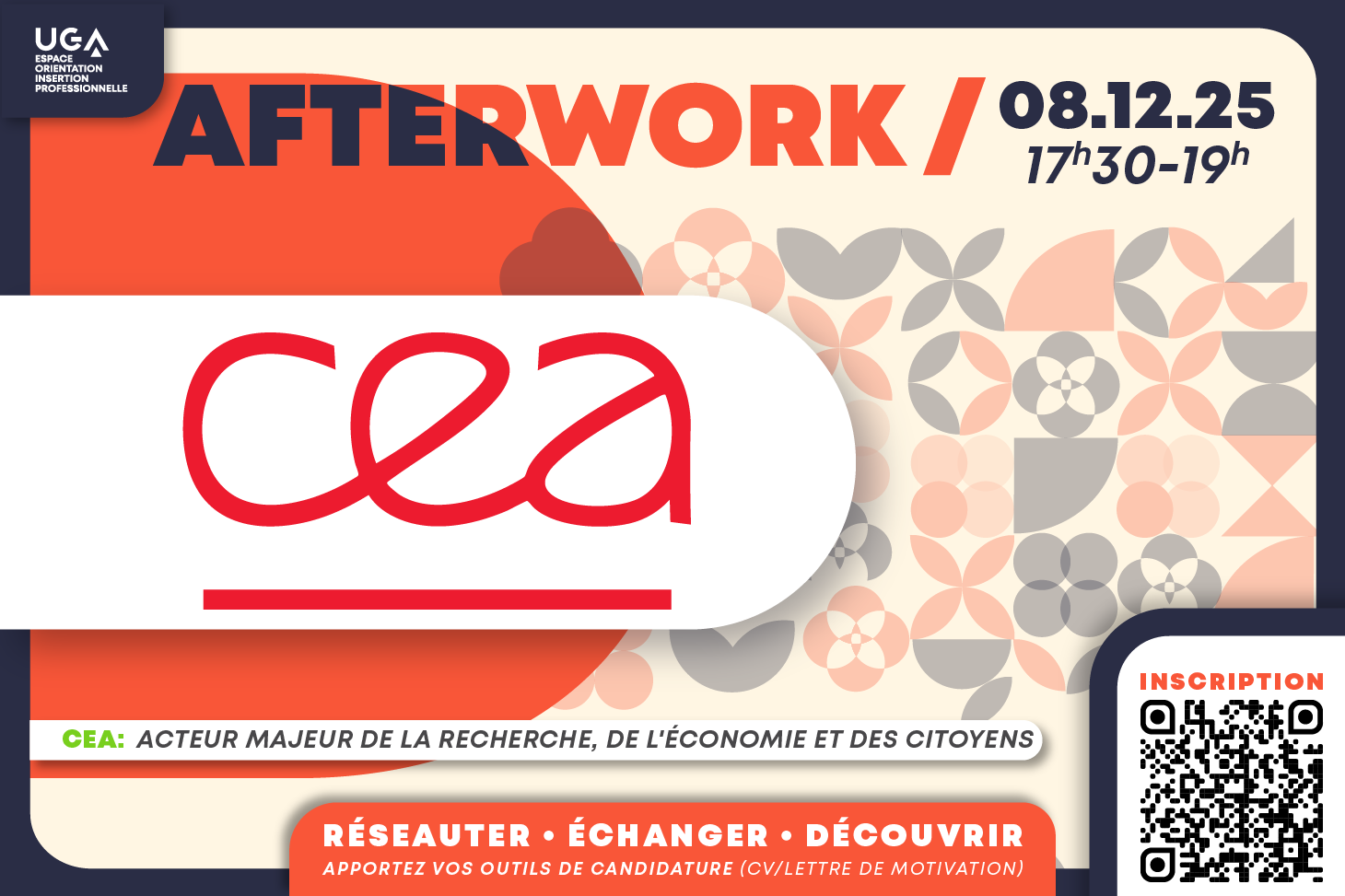 Once a month, the UGA Career Guidance and Professional Integration Center invites you to discover a local company and start building your professional network! Come meet the CEA at the next after-work event.