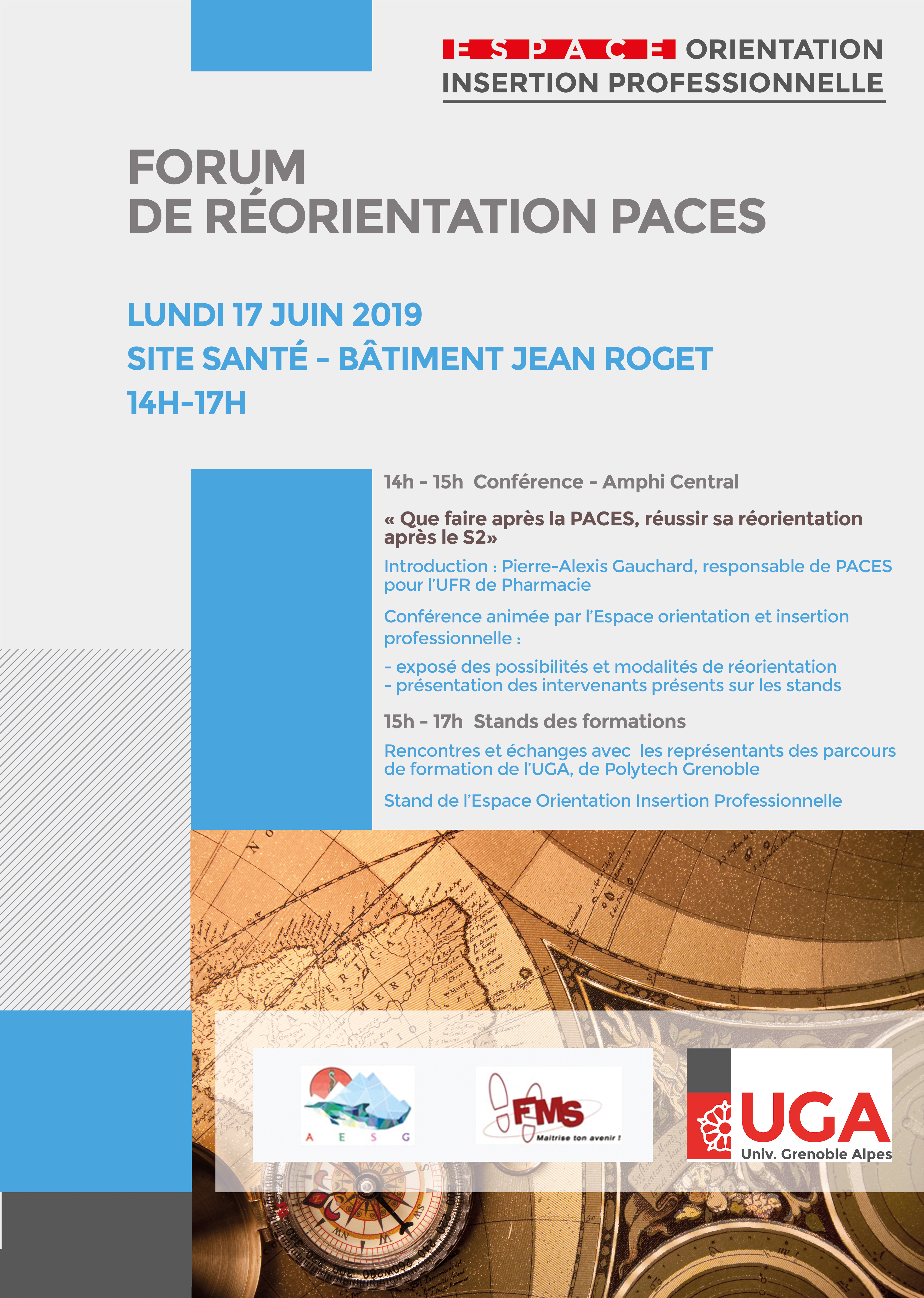 L'Université Grenoble Alpes (UGA) vous accompagne dans l'évolution de votre projet de poursuites d'études et vous informe sur les opportunités qui vous sont ouvertes. Le forum vous permettra dans un second temps de rencontrer les représentants des formations de l'UGA, accessibles après la PACES.